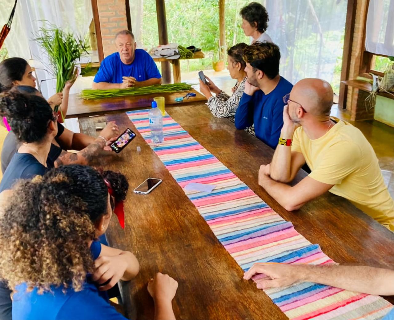 Com tema “Cerrado”, o artesão popular Viníciu Fagundes e o artesão de Novo Gama João Gomes, mais conhecido como Juão de Fibra, realizaram oficinas de imersão e de tramas para um grupo de oito professores de uma escola particular do Rio de Janeiro. O grupo, incluindo a proprietária da escola, foi a Pirenópolis, cidade turística que fica a 130 quilômetros de Goiânia, em busca de conhecimento sobre o segundo maior bioma do Brasil.